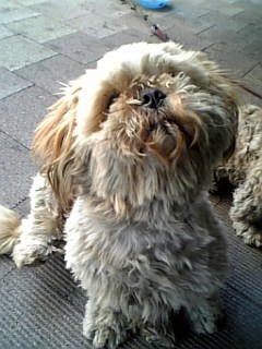 なぜかライブ会場(‥と言っても野外ステージ)に繋がれてたわんこ。